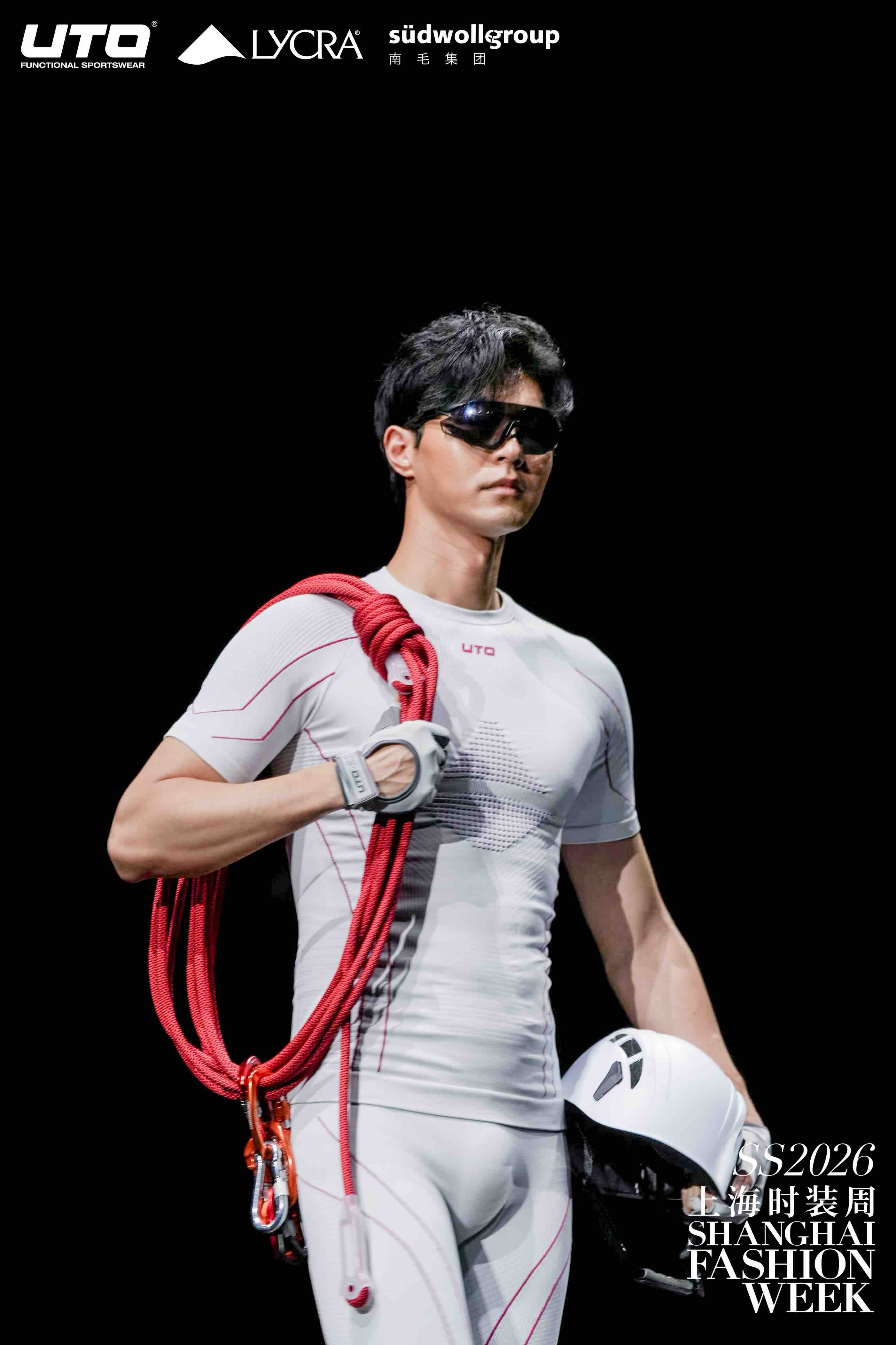 作为“无界”理念的延伸,UTO本次大秀的合作矩阵堪称亮点。品牌携手全球纤维科技领导者LYCRA®(莱卡®)品牌与与享有盛誉的Südwolle Group (德国南毛集团)品牌,共同打造这场科技与美学的盛宴。南毛集团作为全球知名的全羊毛和羊毛混纺类精纺纱线供应商,其高品质的天然原料为UTO产品带来了绝佳的亲肤触感与环保属性;而LYCRA®(莱卡®) 纤维提供的卓越弹性与持久舒适度,则确保了时装化设计的同时不失运动所需的自由感;此外,UTO贴身层更有THERMOLITE® ALL SEASON纤维的加持,其创新型纤维结构可以感应微环境变化, 保暖控湿,为穿着者提供全天候的温暖舒适的穿着体验。THERMOLITE® 品牌作为全球领先的轻质保暖科技品牌,致力于为消费者提供温暖、干爽与舒适的穿着体验。