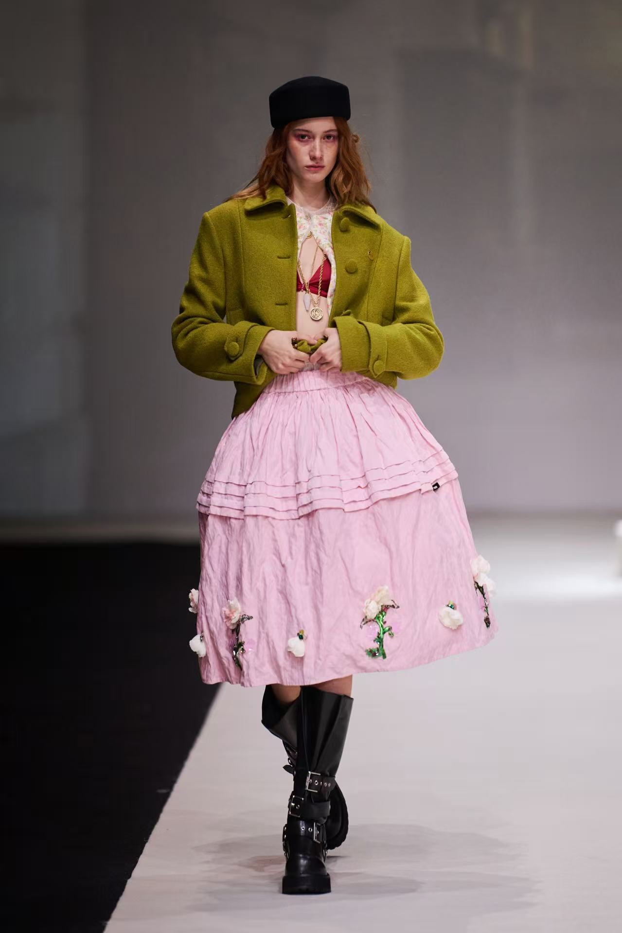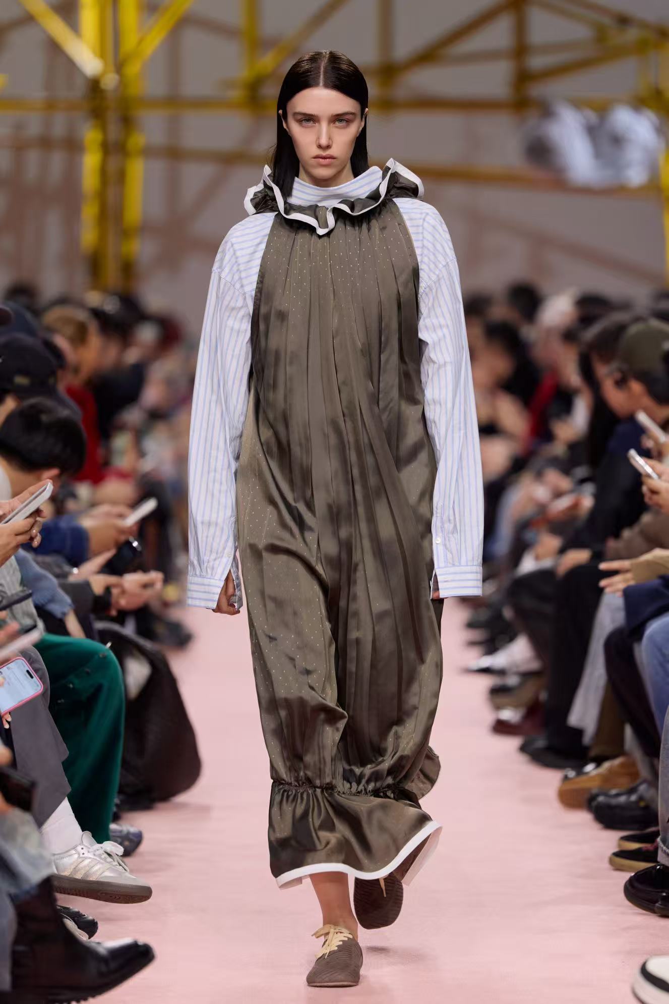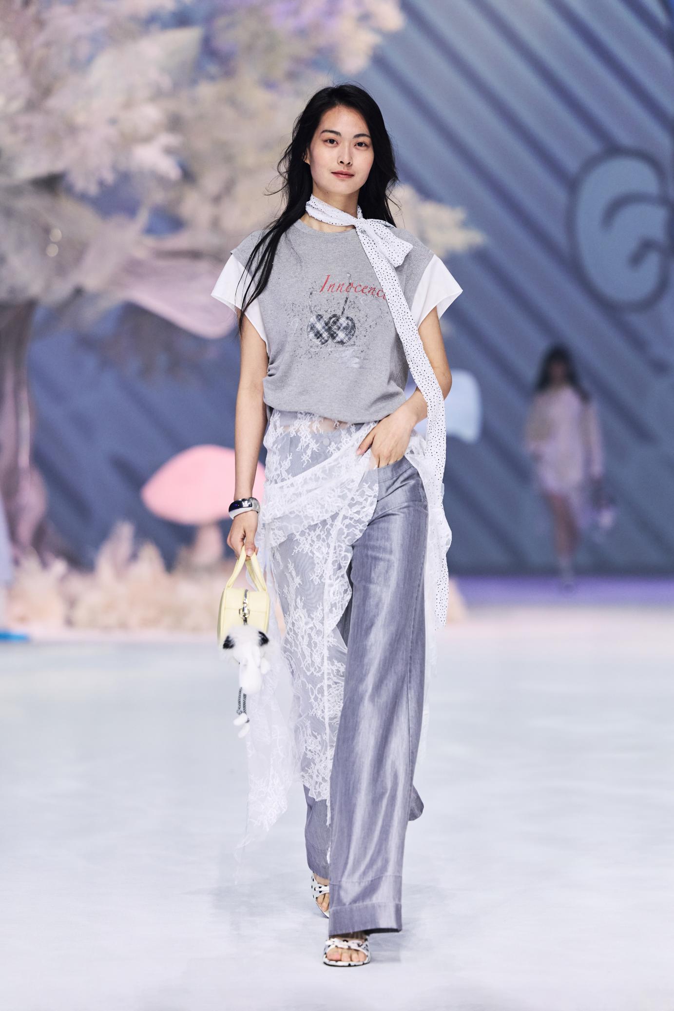 “萃”,草木繁聚而生辉,是精神的凝聚,亦是力量的共生。本次闭幕大秀以《易经》“泽上于地,萃” 为灵感本源,秀场空间凝萃 “地” 之包容,融纳 “泽” 之流动 —— 蜿蜒秀道如溪泉契入大地肌理,荟萃天地自然气韵,为东方美学的故事开篇蓄力。大秀铺展 “荟萃”“萃生”“萃聚” 三大篇章,让秀场空间本身成为一首流动的诗行;音乐与新媒体艺术的交融,则赋予这场美学表达鲜活的呼吸。音乐家李晓川与上海音乐学院融合乐团联袂创作,旋律与光影在秀道间交织共生,泽水漾动的韵律与万物复苏的影像彼此应和,于声影交融之际,让汇聚的多元能量蜕变为蓬勃生长的生机,为东方美学的叙事注入灵动诗意。新生代超模阵容亦将集体登场,身姿如草木向上拔节,让东方传统底蕴与当代新潮文化在 T 台之上相融共生。
